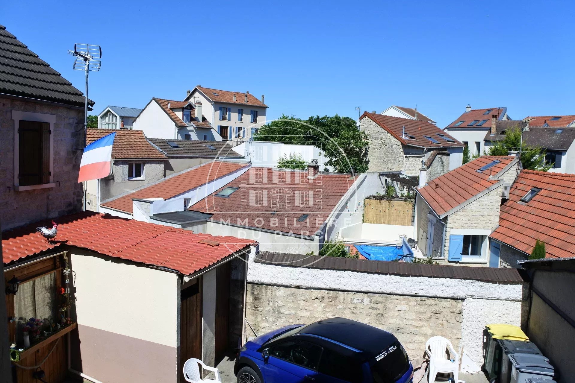 Stationnement d'un véhicule dans la cour.