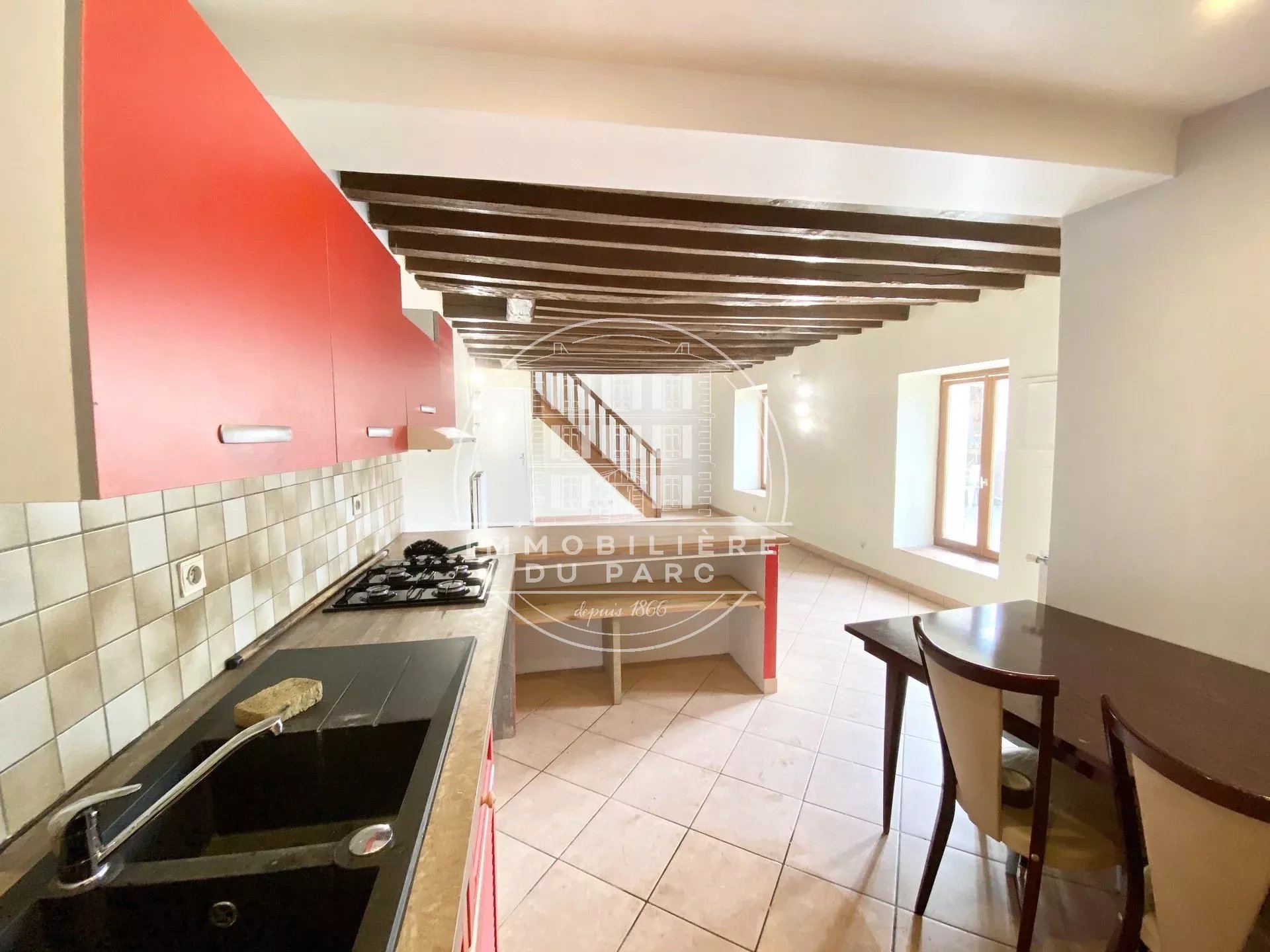 Rue Louis Leroux, dans le centre-ville de Carrières Sur Seine, au calme, maison de ville de 73.70m² au sol (67.72m² hab.)comprenant, au rez-de-chaussée : cuisine aménagée, séjour, wc.